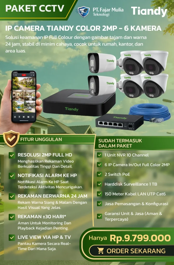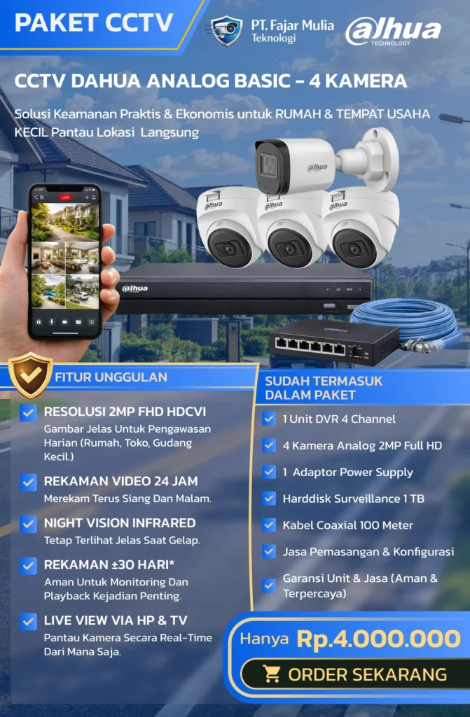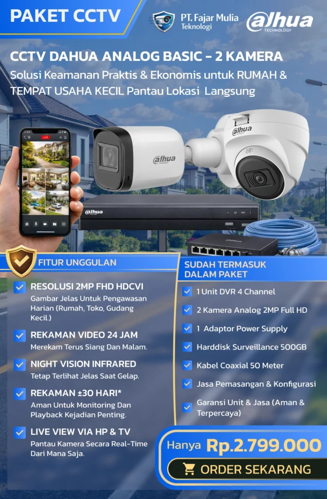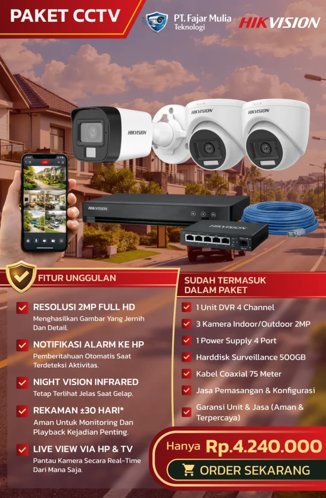 Kami juga menyediakan pilihan paket CCTV lainnya mulai dari 2 hingga 16 kamera, dengan spesifikasi dan fitur yang dapat disesuaikan dengan kebutuhan rumah maupun tempat usaha Anda.